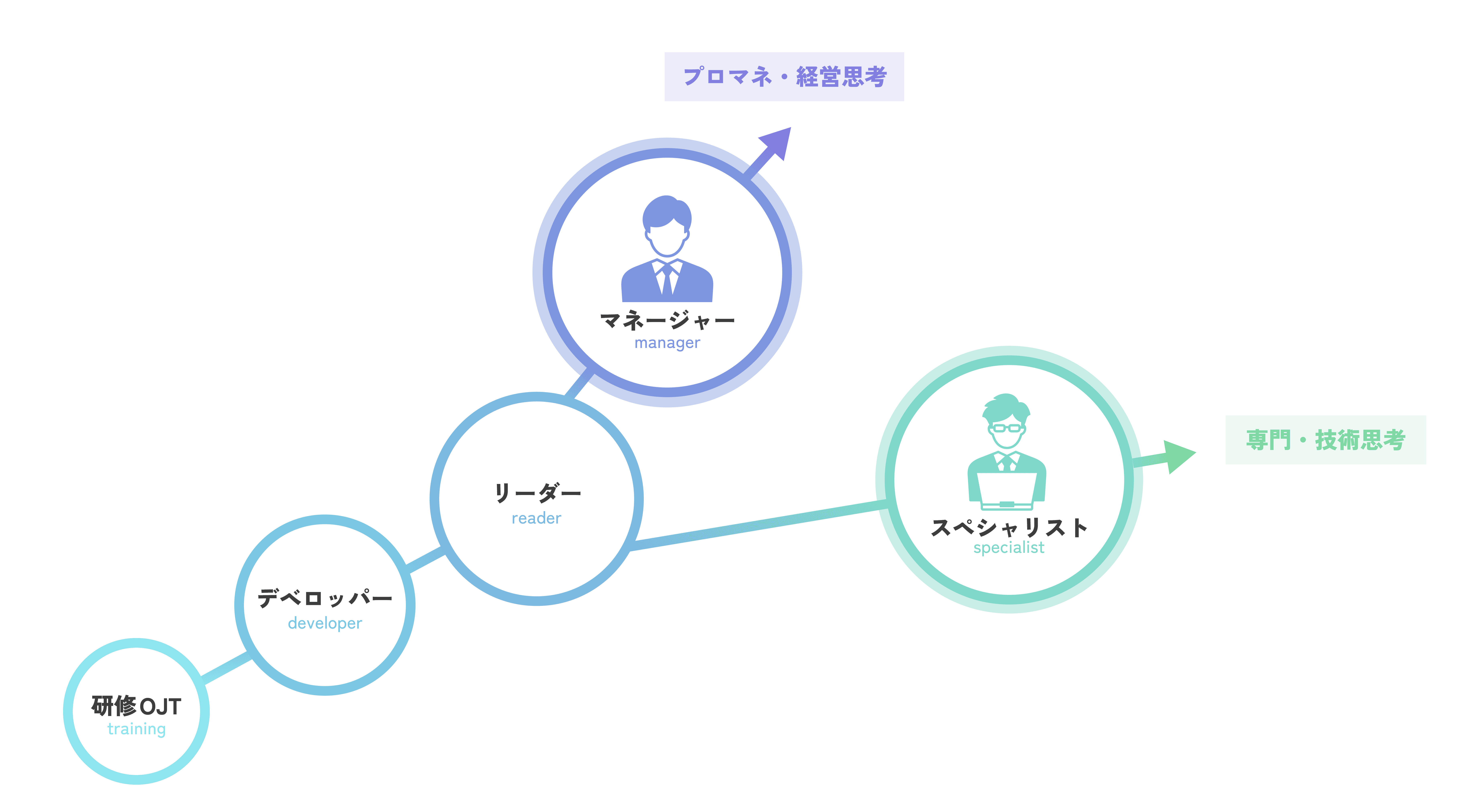 個人の志向に沿った選択ができるよう充実したキャリアパスを用意しています。